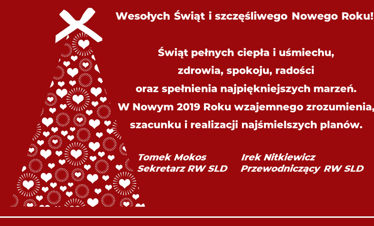 Świąt pełnych ciepła i uśmiechu, zdrowia, spokoju, radości oraz spełnienia najpiękniejszych marzeń. W Nowym 2019 Roku wzajemnego zrozumienia, szacunku i realizacji najśmielszych planów.